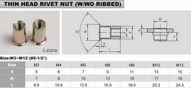 钢制平头带滚花铆螺母 (英制/美制)