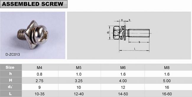 十字槽小盘头螺钉、弹簧垫圈及平垫圈组合件